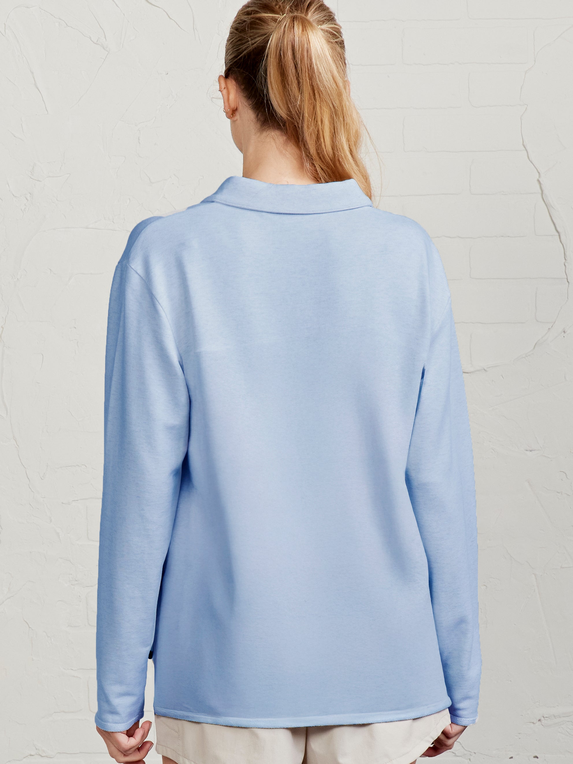 Elevate your casual wardrobe with the French Terry Polo Sweatshirt. Crafted from soft French terry, this relaxed-fit style features a self polo collar for a laid-back yet polished look. The raw edge hem at the sleeves and bottom adds a touch of modern, effortless detail. Perfect for layering or wearing on its own, this sweatshirt blends classic polo style with everyday comfort. #TW989H